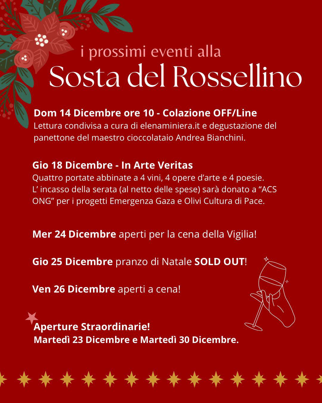 A volte sentiamo il bisogno di creare qualcosa di diverso. Serate di degustazione, incontri con produttori, piccole mostre o momenti di musica e convivialità. Occasioni per condividere, scoprire e assaporare. Un modo per vivere il "Rossellino" non solo come luogo, ma come esperienza.